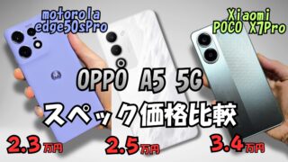 スマホ情報OPPO A5 5G / POCO X7 Pro / moto edge 50s pro【スペック 価格 比較表】 ※メーカー側の宣伝レビューではなく、消費者が得する情報や正直レビューを行っています。 2025.12.05スマホ情報